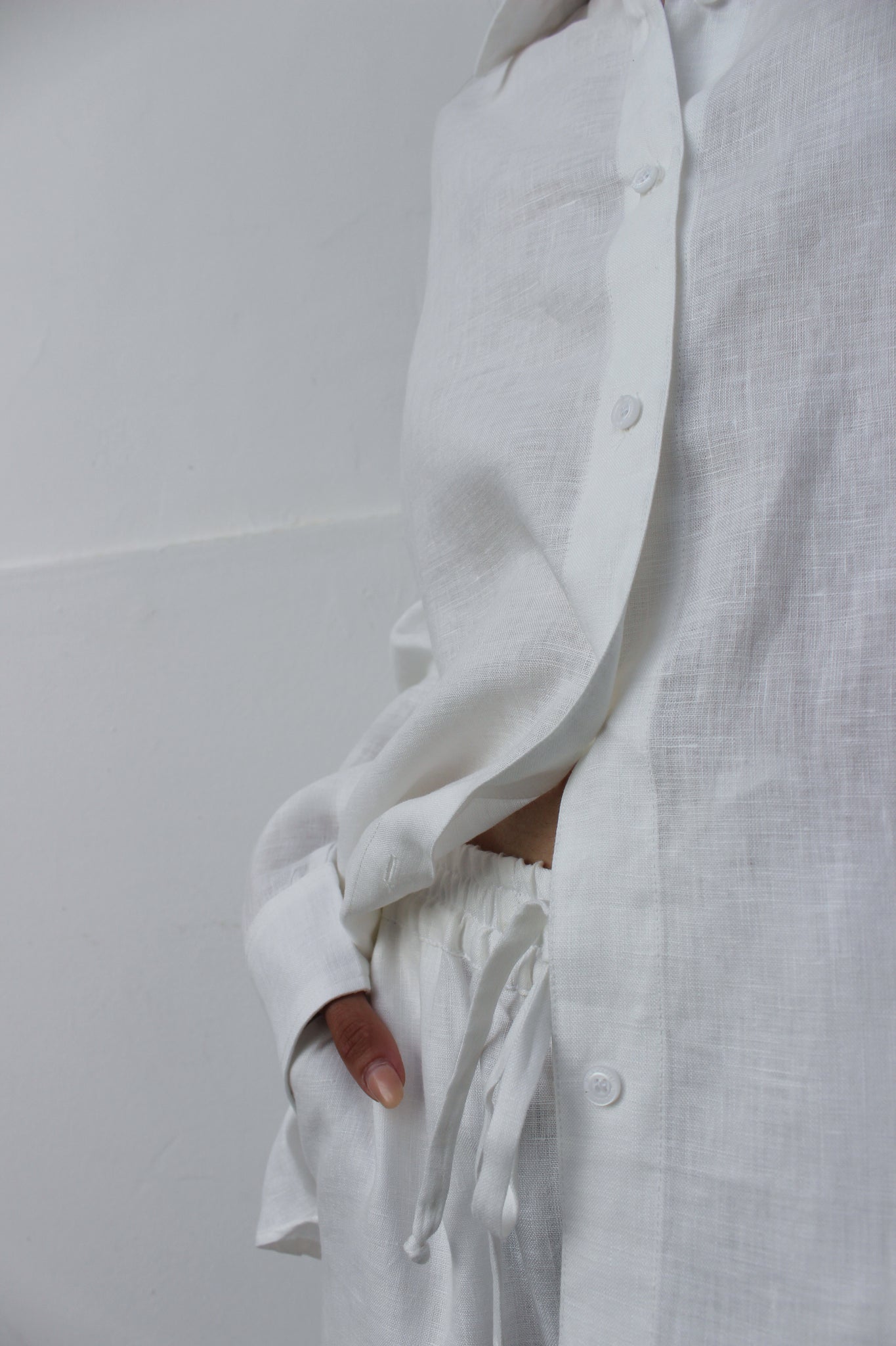 Pantalón confeccionado en lino 100% con elástico en la cintura y tiritas reguladores para ajustar el fit a tu gusto. Fit wide con un toque elegante gracias al lino puro. Ideal para combinar con la camisa Marea y lograr un total look.