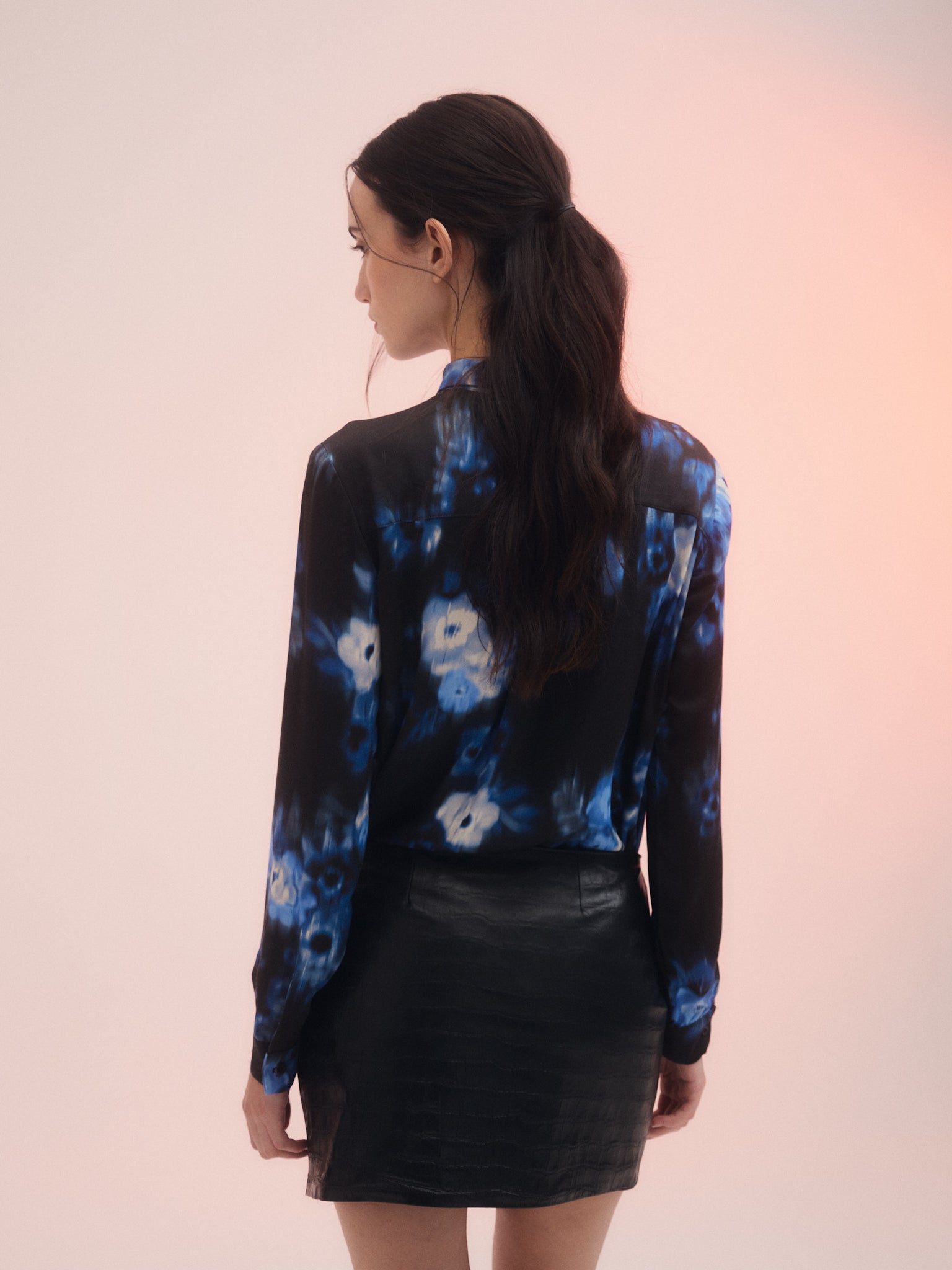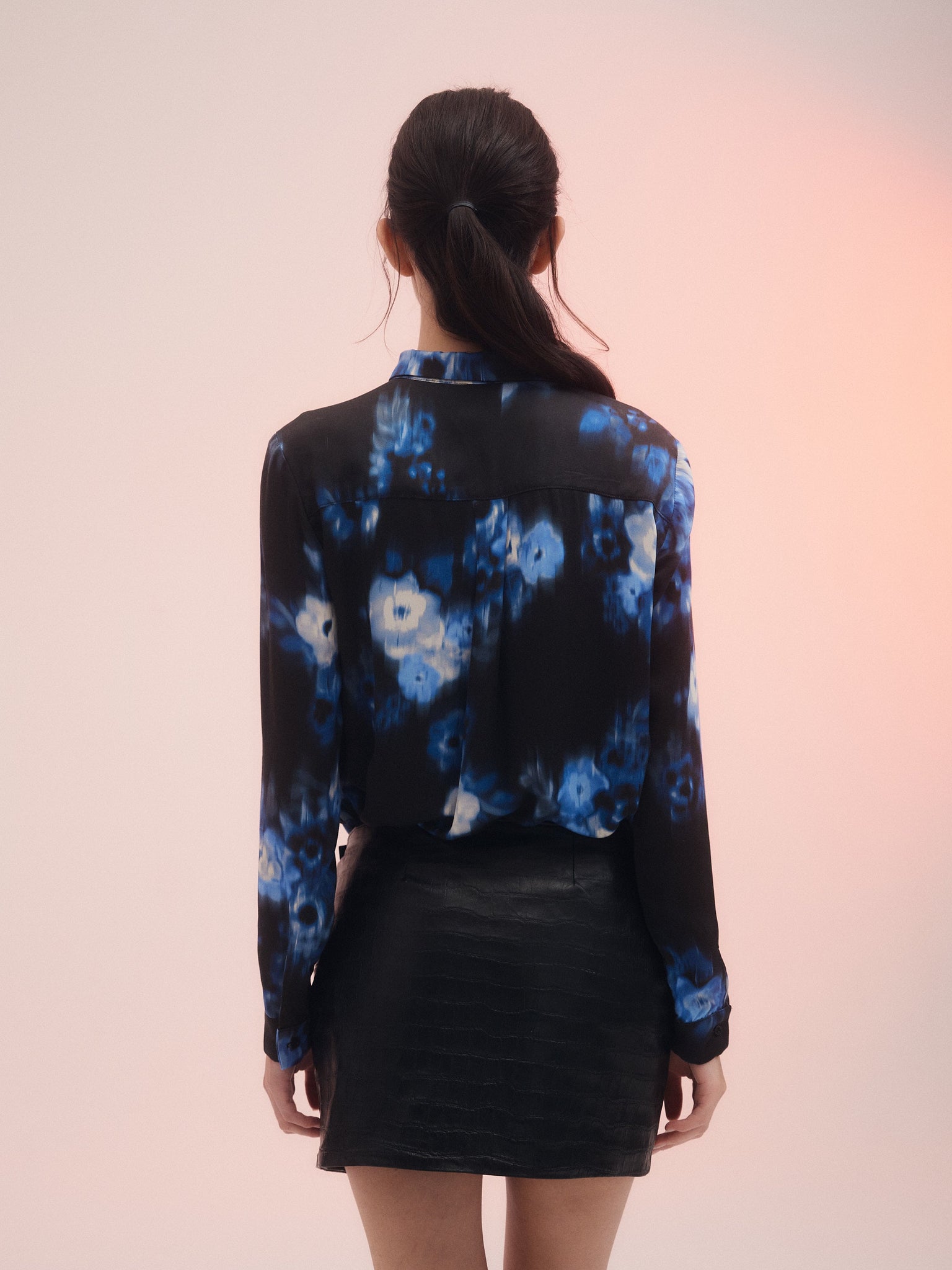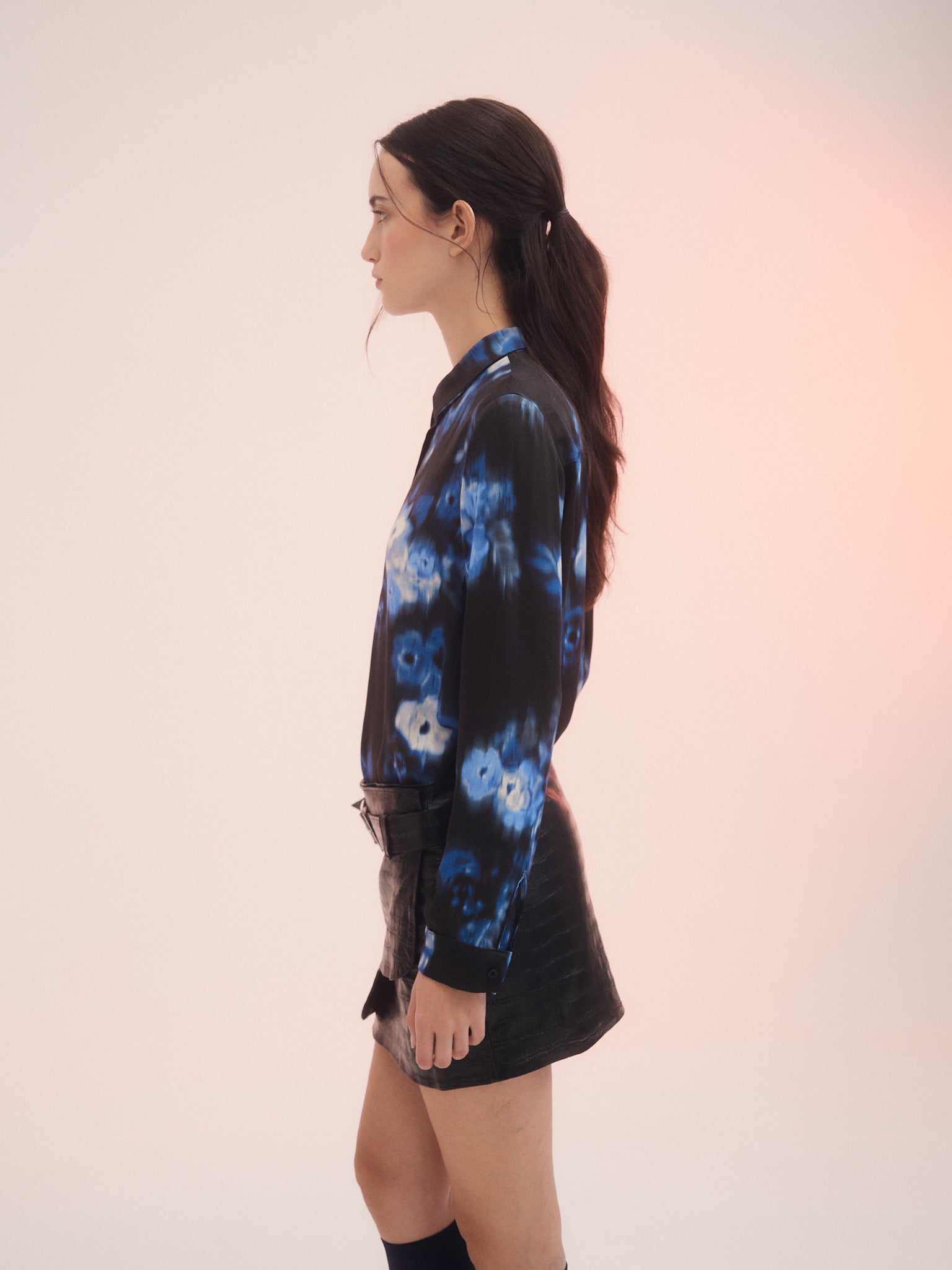 Camisa Abby, Confeccionada en 100% rayón con una estampa digital exclusiva de la colección DIFFUSE. Fit clásico y sofisticado. Posee manga larga y detalle de tajo y largo irregular en lateral. Ideal para agregar un toque de estilo y elevar cualquier look.