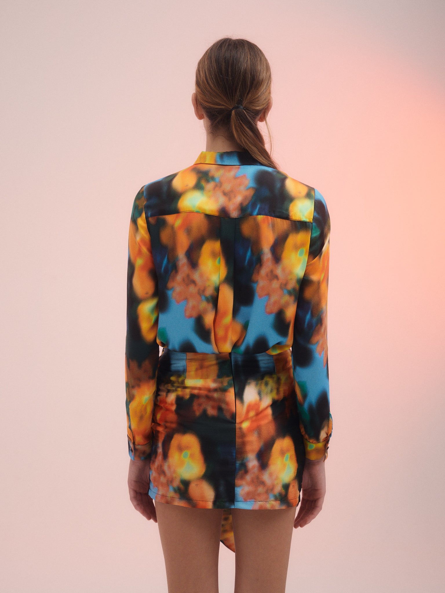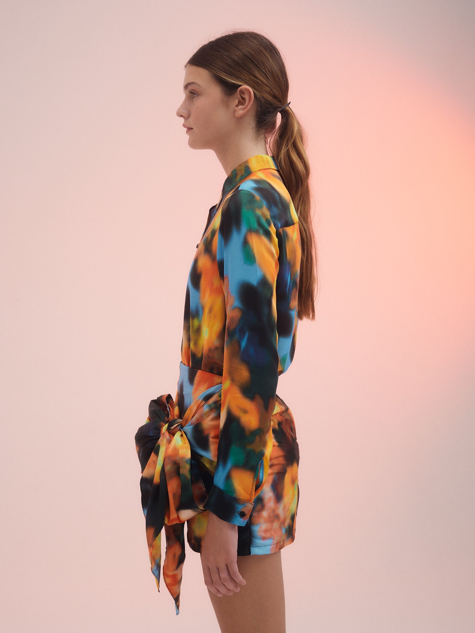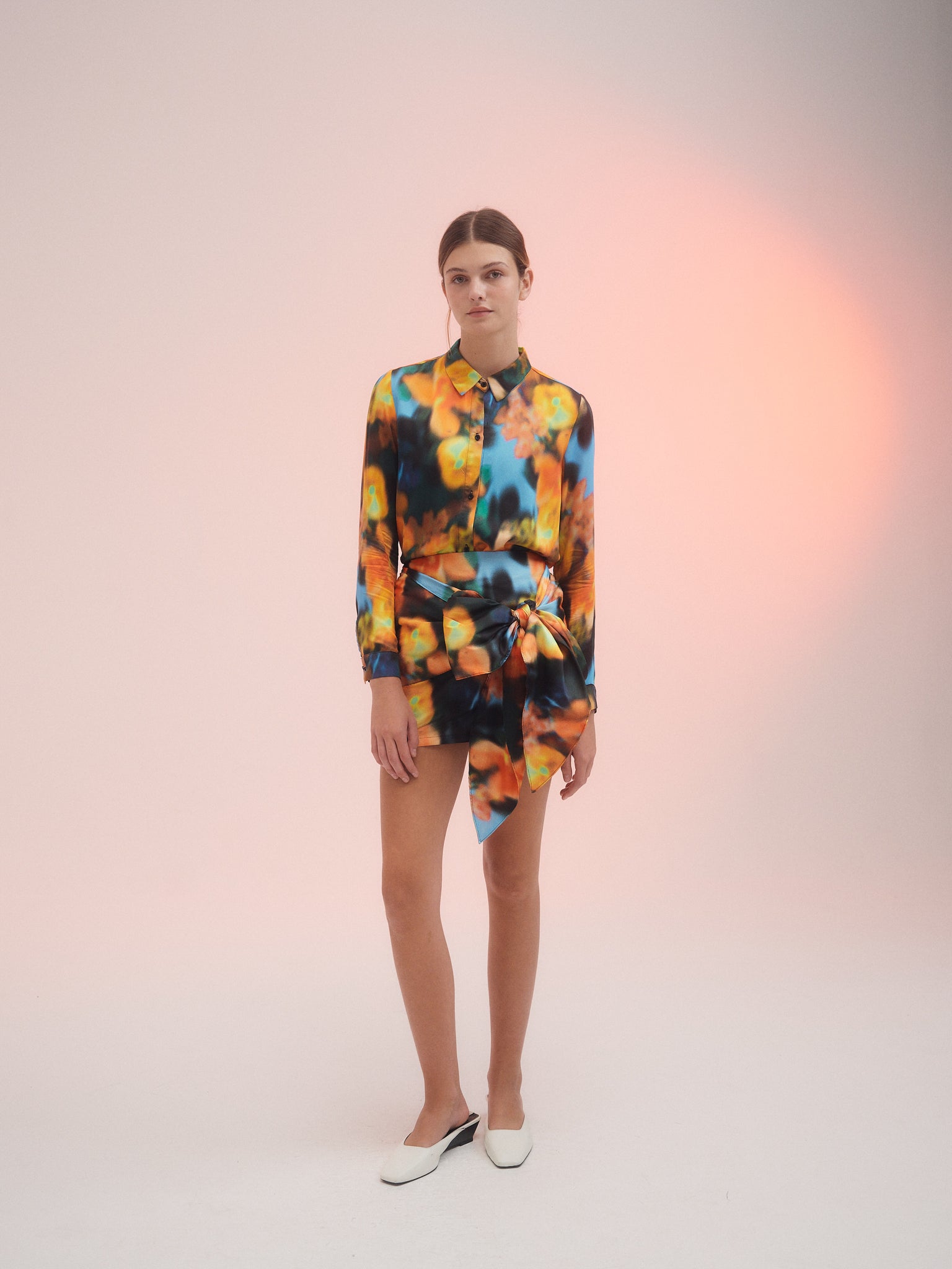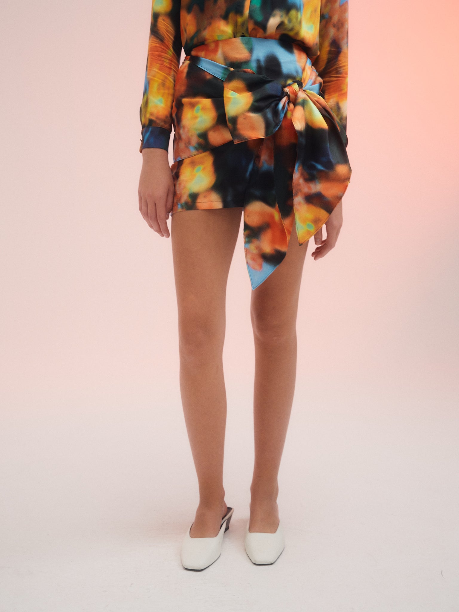 Ribbon, Mini falda con estampa protagonista, confeccionada en shantung. Detalle de Maxy lazo que se anuda formando un moño. Acceso mediante Cierre invisible.