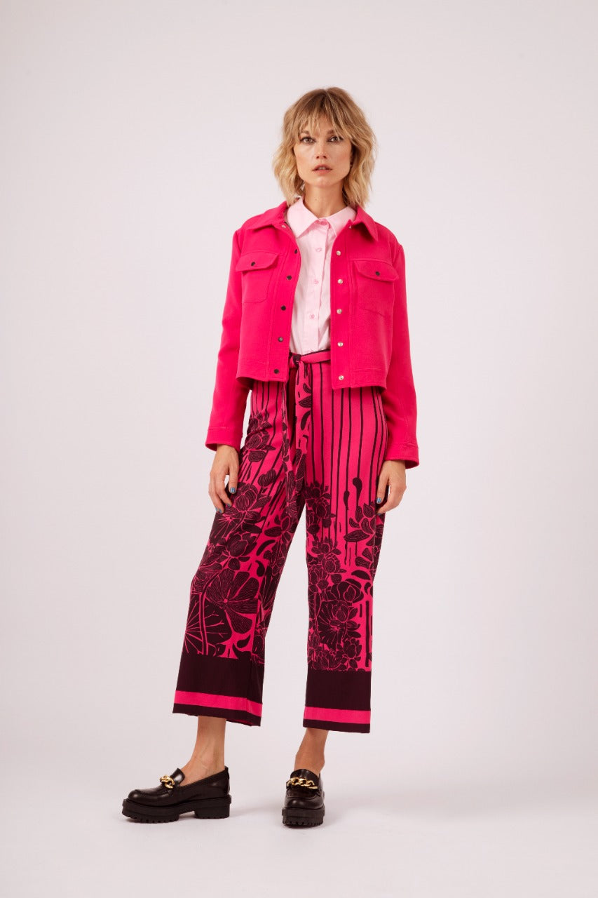 Pantacourt con lazo en cintura. En esta oportunidad decidimos hacerla en el color de temporada con la estampa LOTO de la colección FRESH FRUIT. Composición: 97% poli 3% spandex