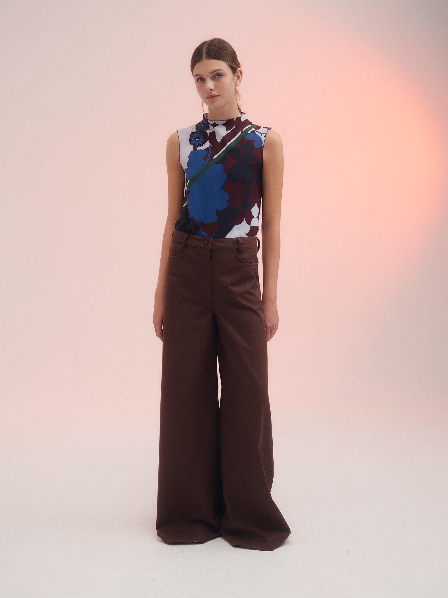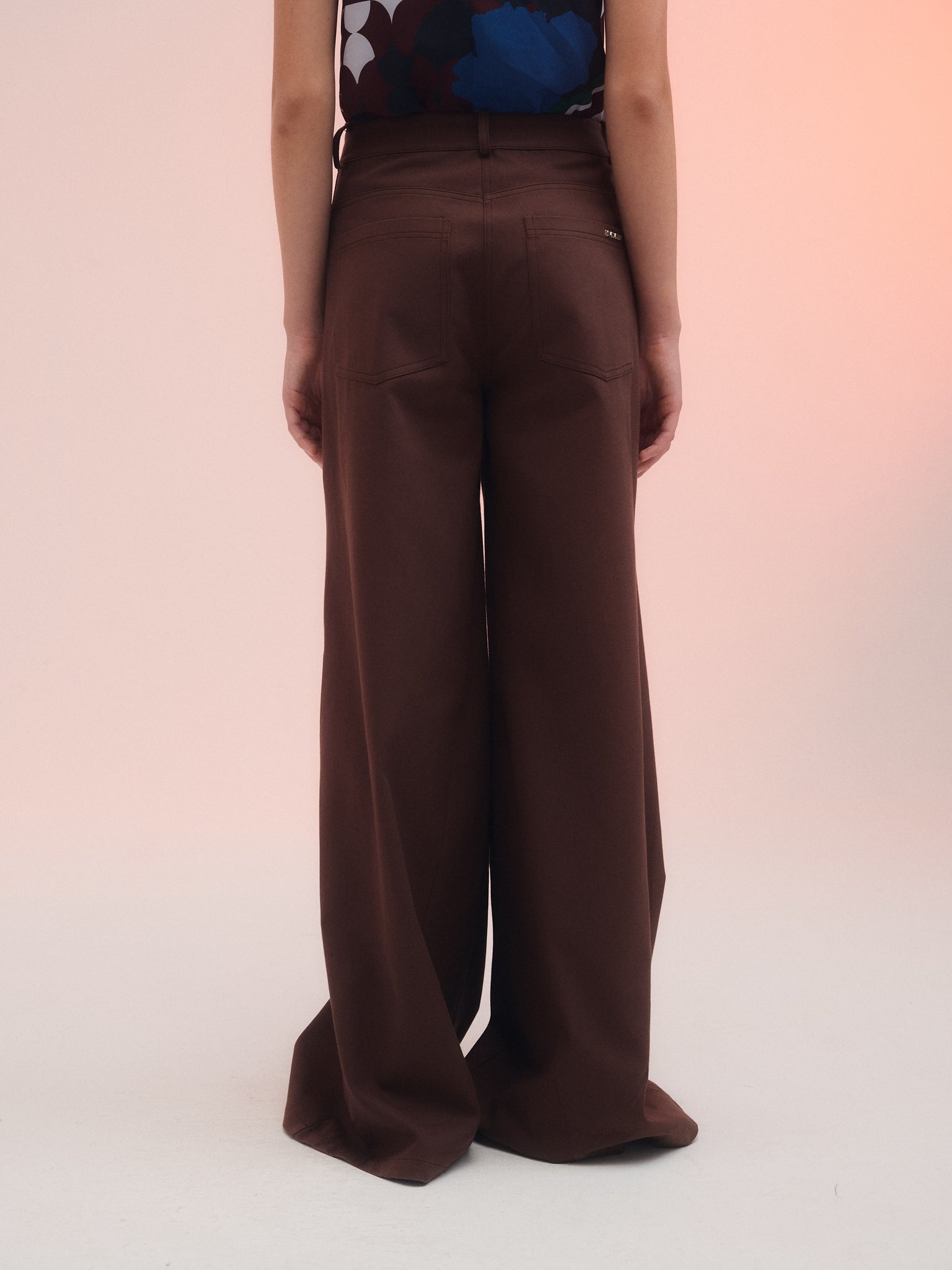 Pantalon tipo 5 bolsillos con un diseño súper wide leg. Confeccionado en gabardina de algodón. Detalles jeaneros y acceso mediante snap al tono. Fit wide y largo hasta el piso.