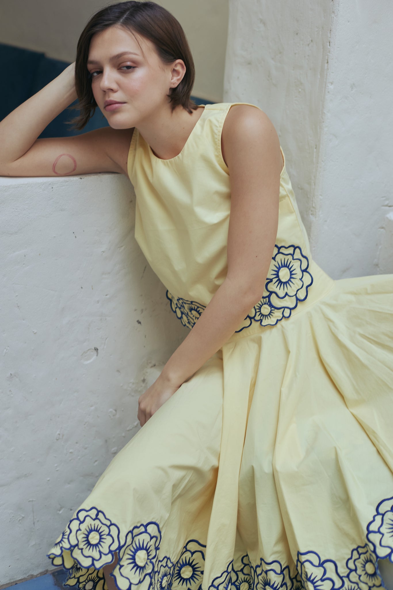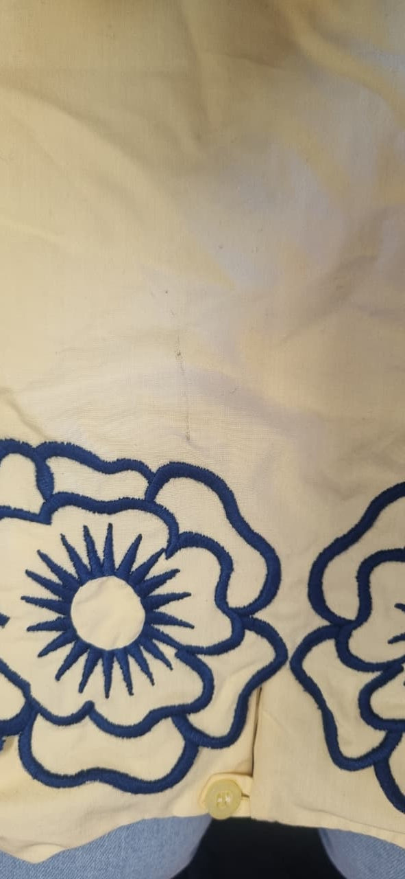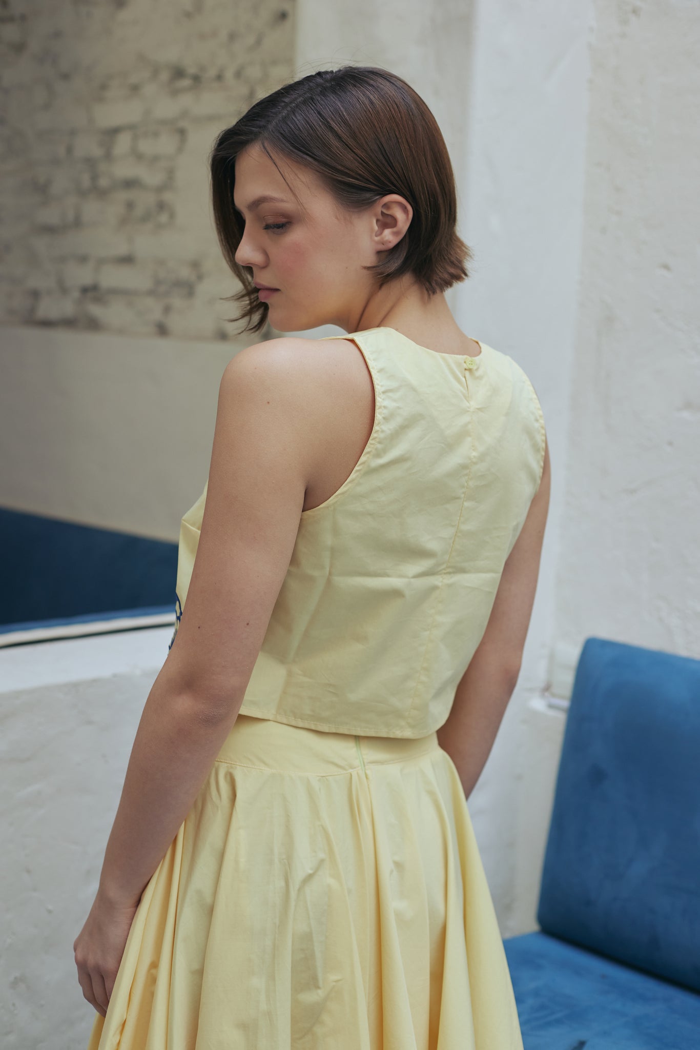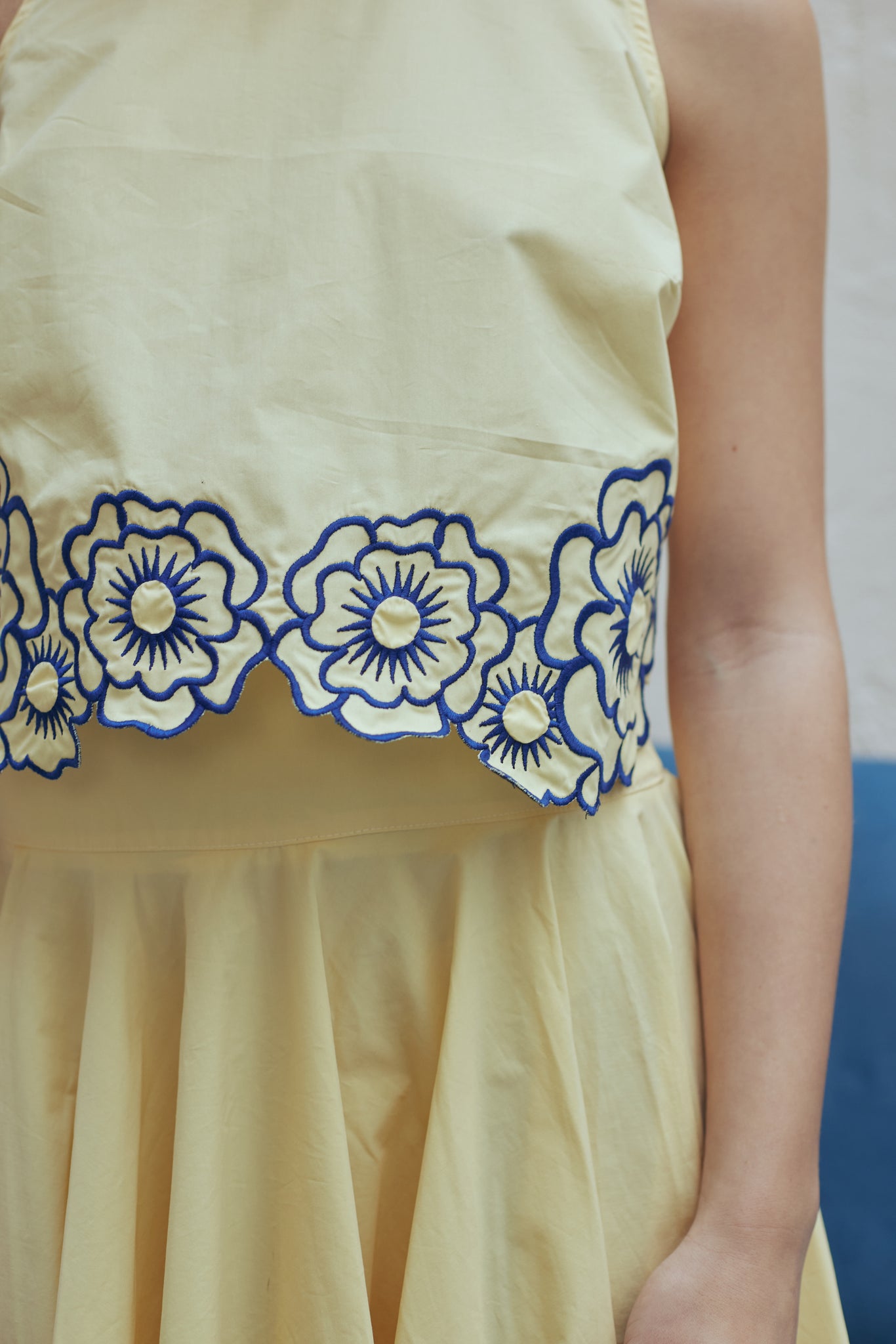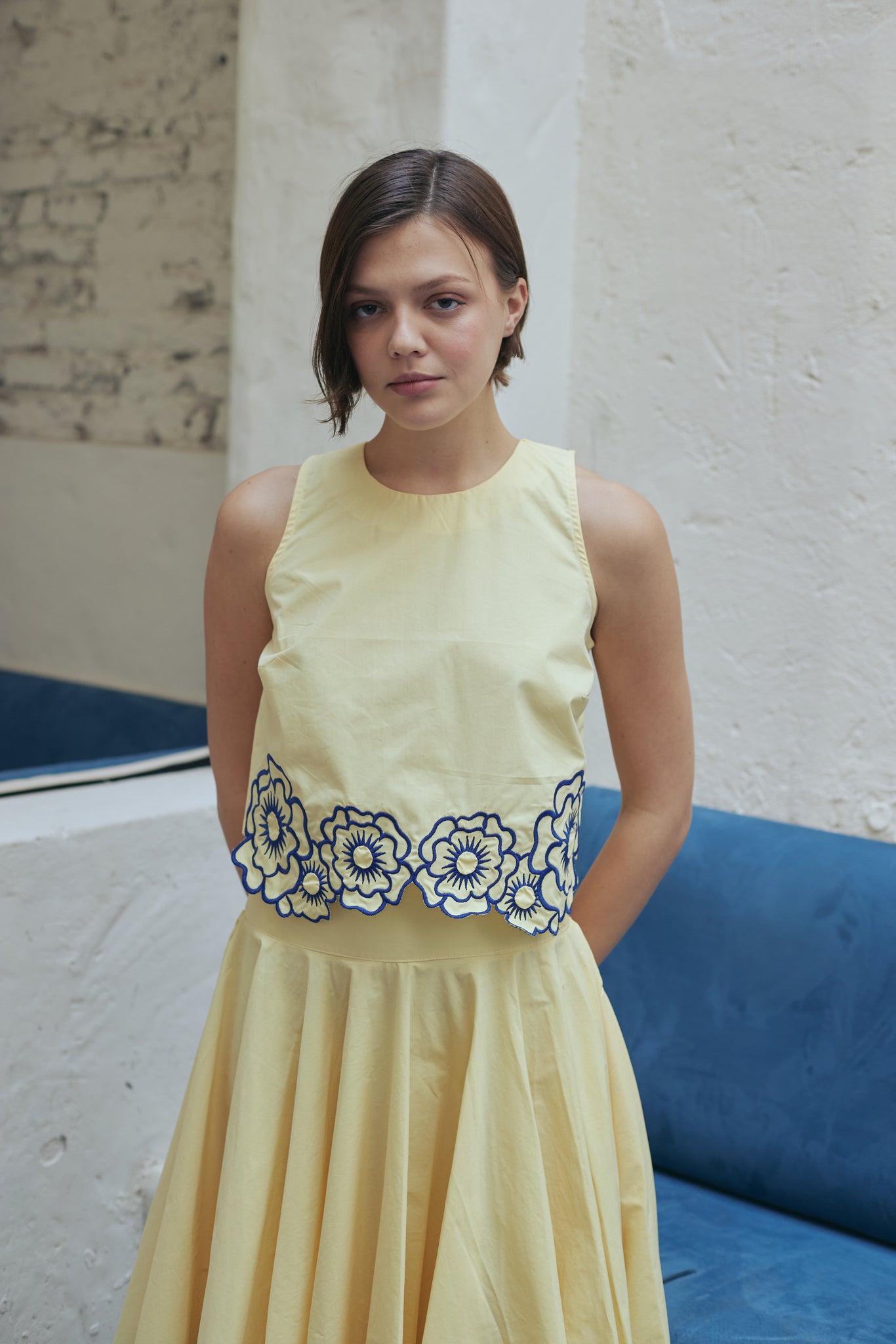 Top de poplin papertouch 100% algodón con bordado a contratono en ruedo. Ideal para combinarlo con la falda astro