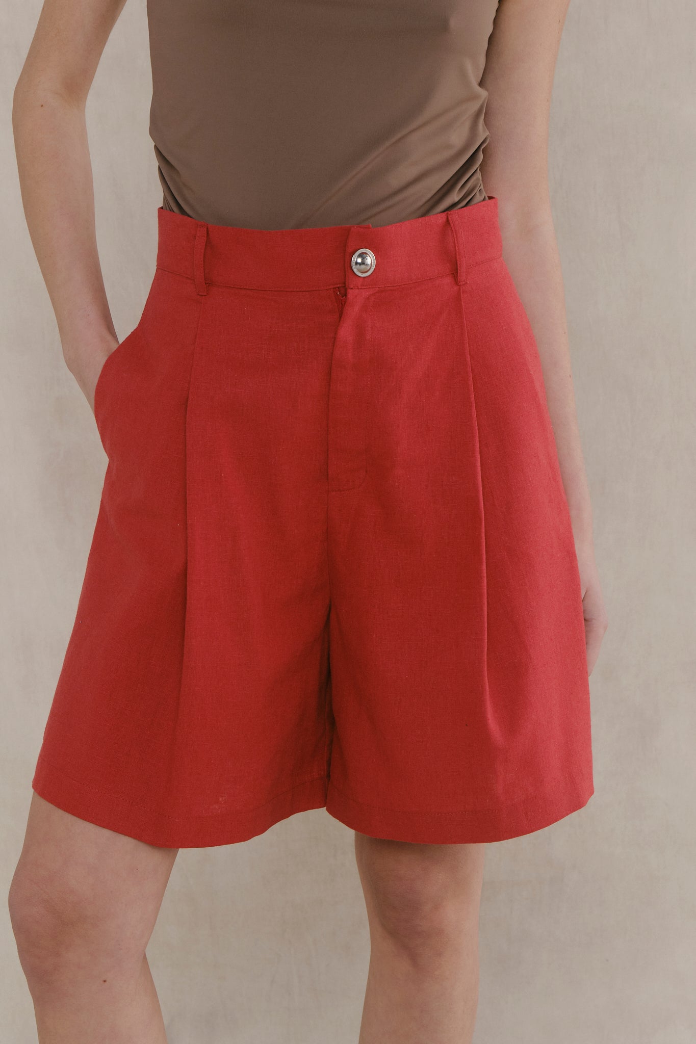 Bermuda de lino con tabla que aporta amplitud y comodidad. Detalle de avío personalizado. Fit a la cintura y largo arriba de rodilla. Un item clásico que se reversiona.