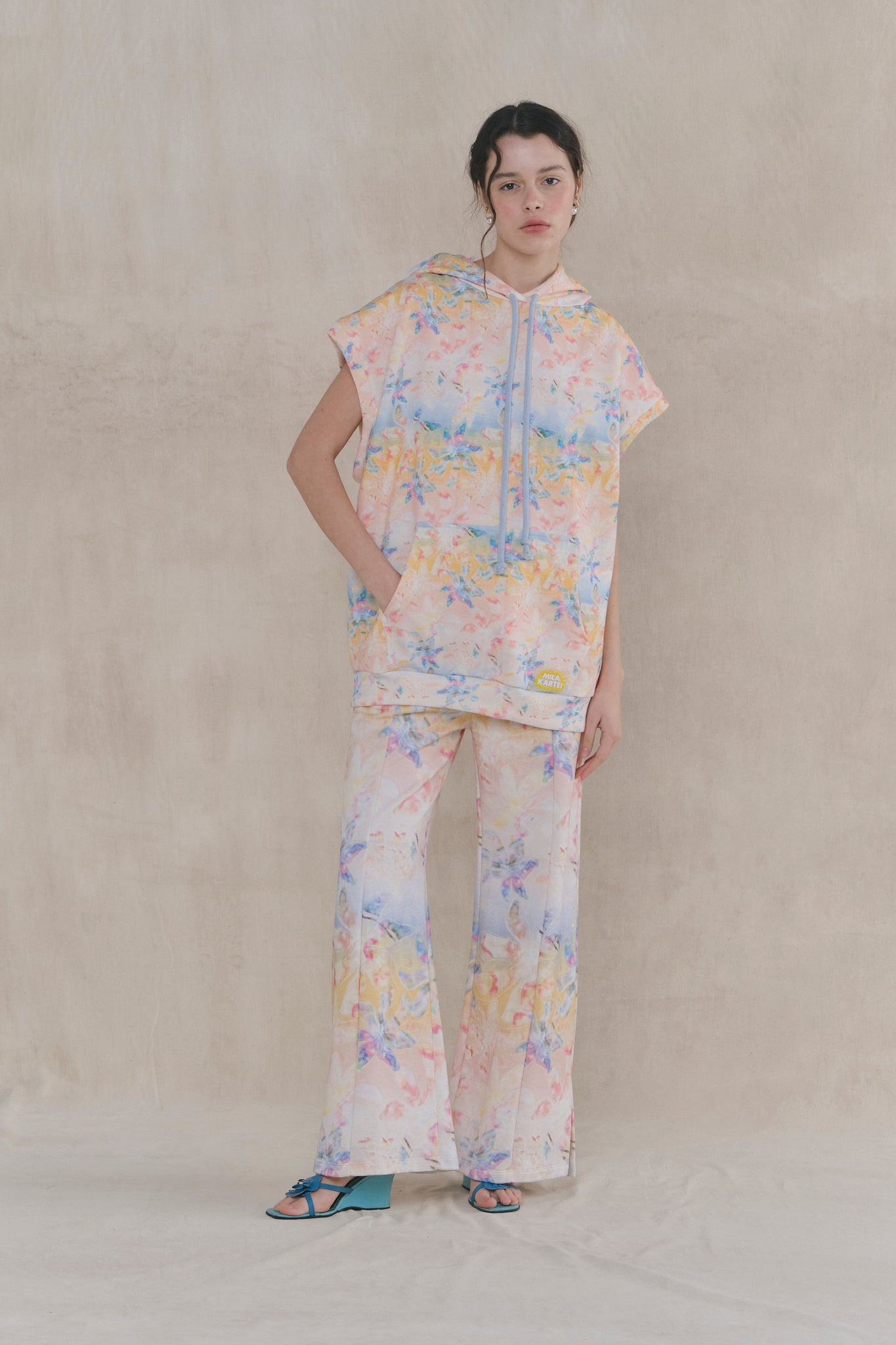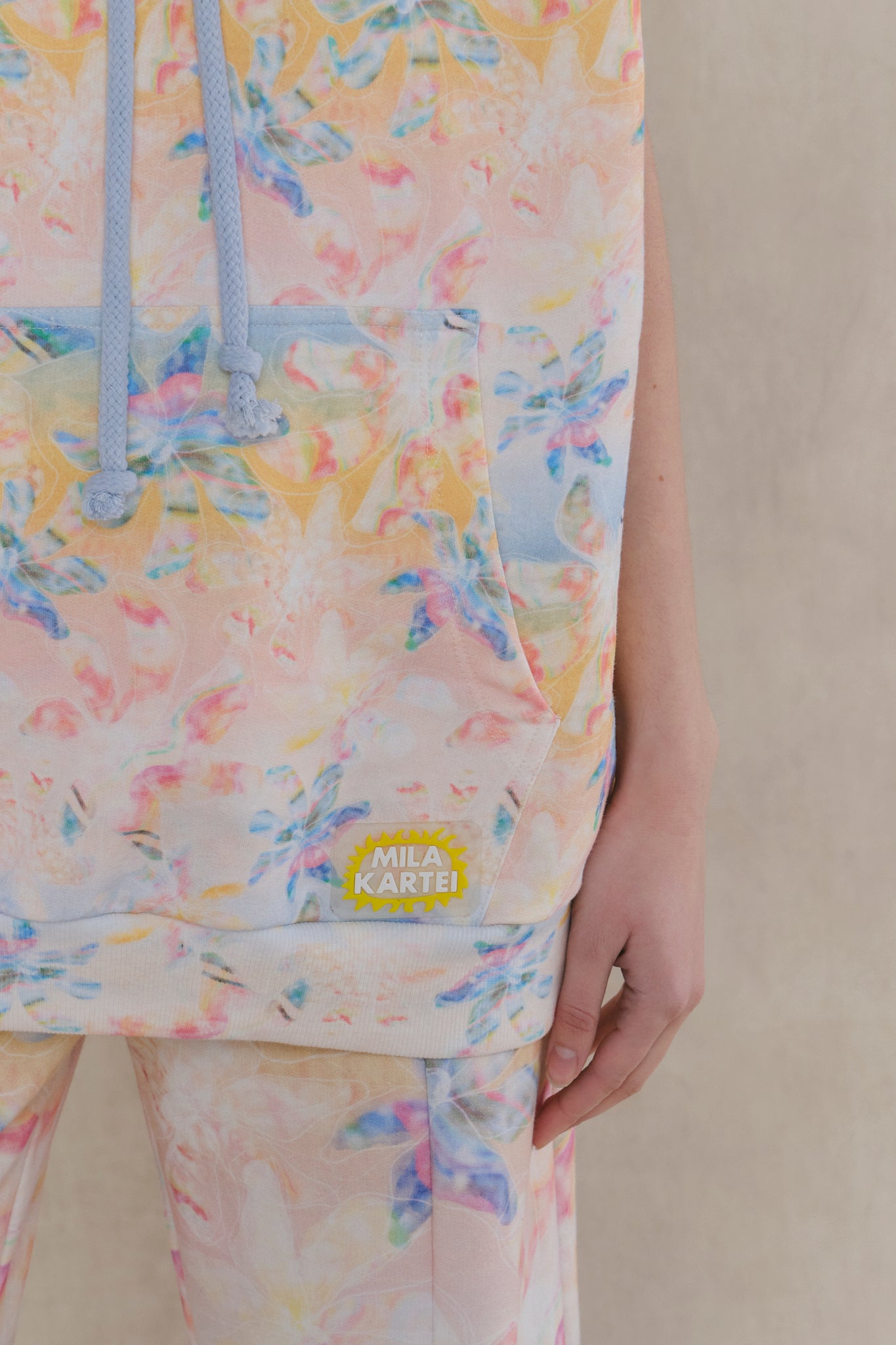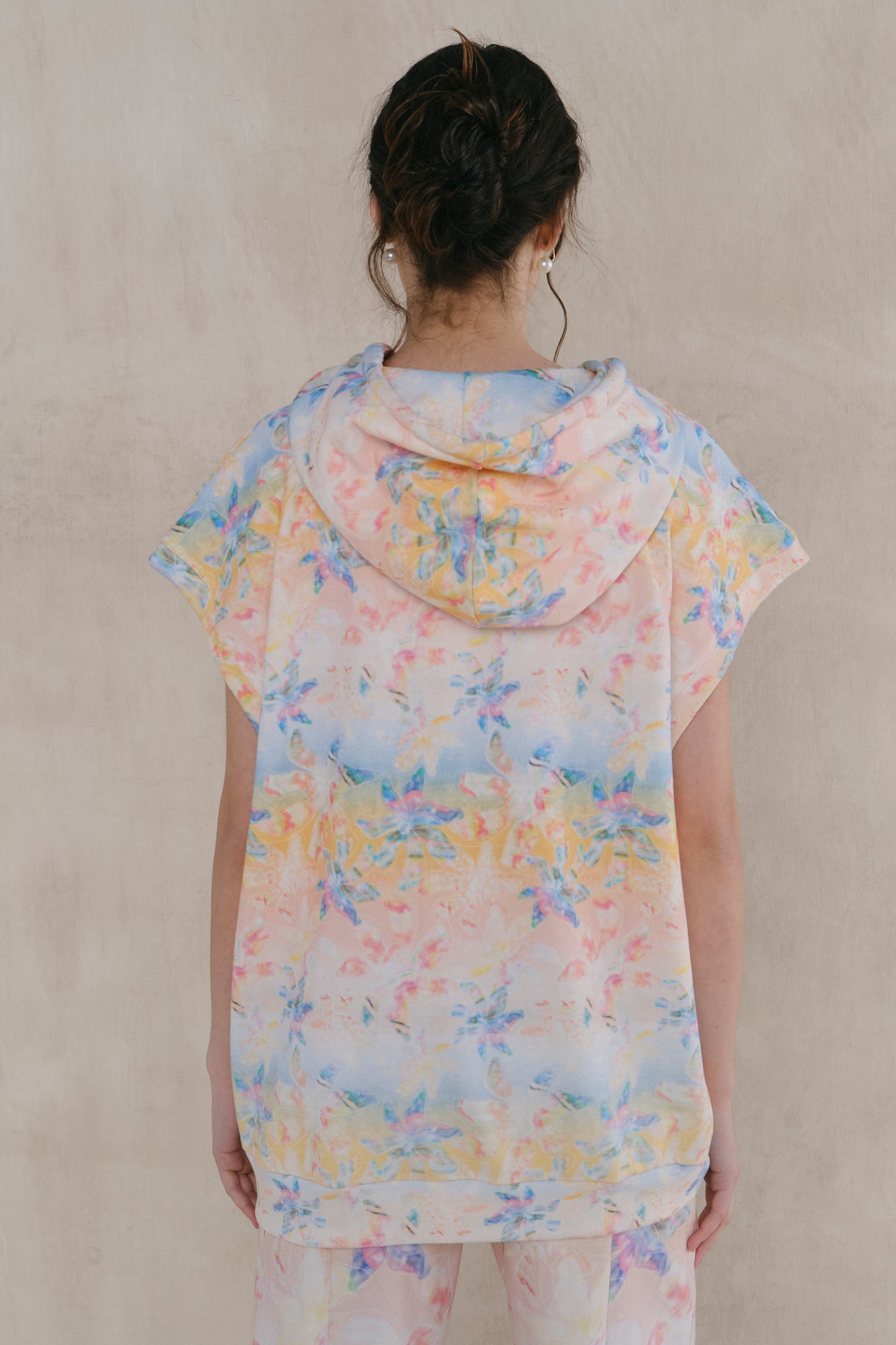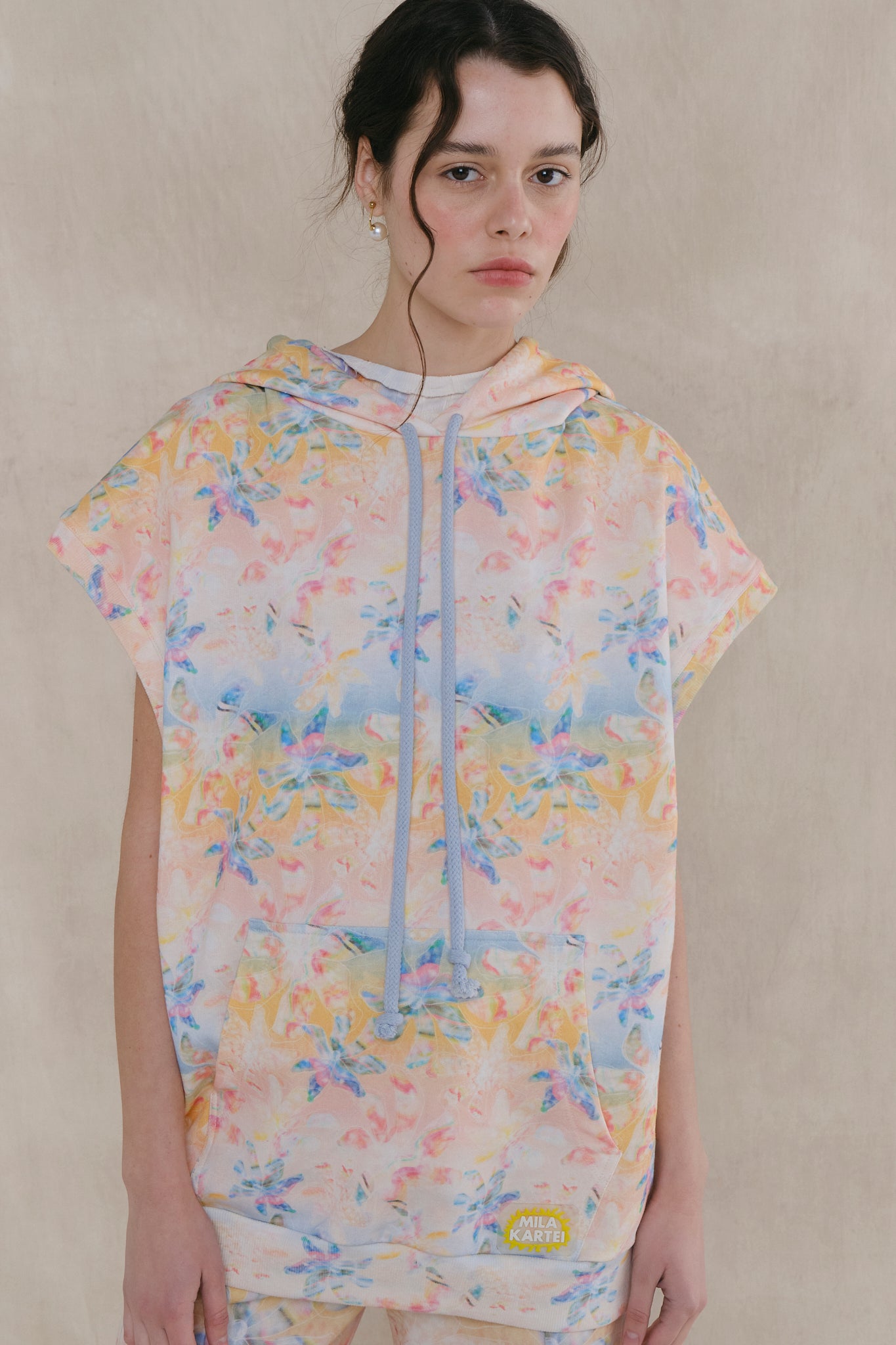 Sudadera tipo poncho de algodón estampado digitalmente con ilustración exclusiva. Fit oversized. Capucha y bolsillos frontales. Etiqueta personalizada con toque deportivo. Ideal para combinar con pantalón Lúdic y lograr un total look relajado perfecto para una tarde en la playa.