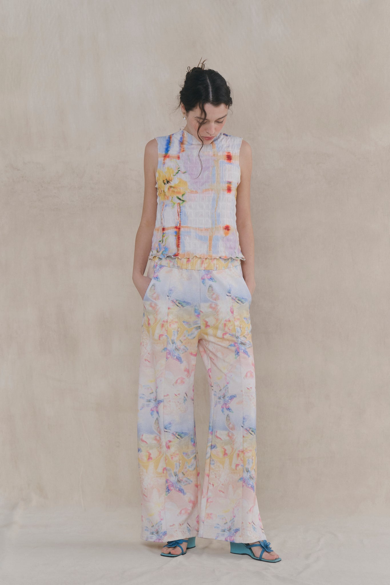 Pantalón tipo jogging con elástico en cintura, fit wide. Con estampado digital exclusivo de la colección Oceanica SS26.