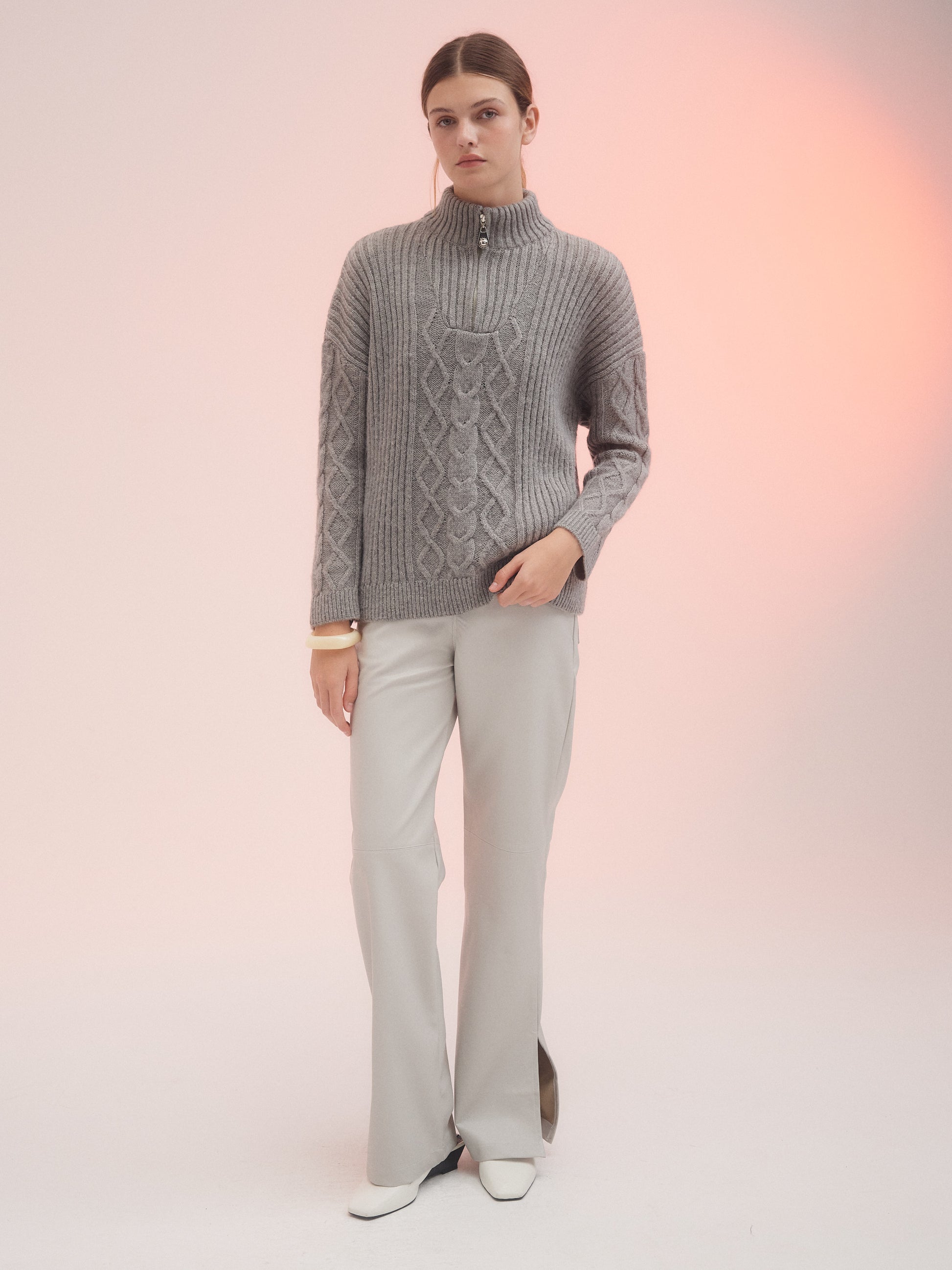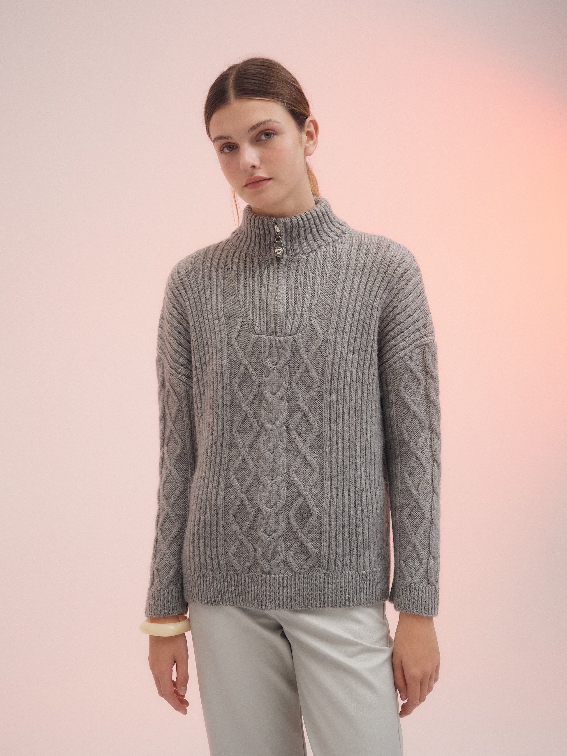 Sweater Pipe, Posee cuello tipo polera con cierre metálico con avío personalizado. Tejido en alpaca andina lo que combina abrigo con una calidad excepcional. Detalles de trenzas y tramados. Fit clásico.